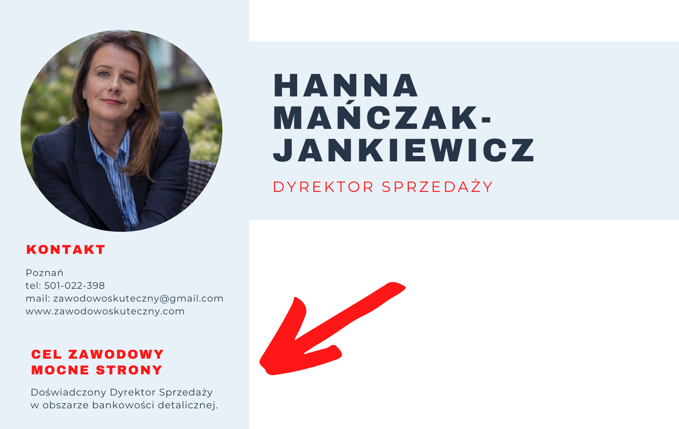 – rozbudować w nagłówku motto zawodowe, aby już na samym początku było wiadomo, że jesteś ciekawym kandydatem